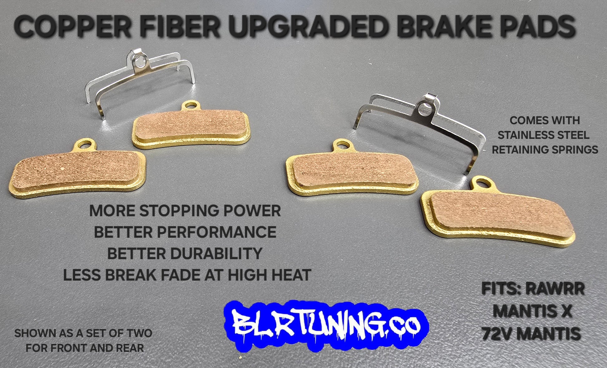 Looking for even more stopping power? Check out our ceramic brake pad upgrade for the ultimate in heat resistance and fade-free braking. https://www.blrtuning.co/products/ceramic-brake-pads-upgrade-for-rawrr-mantis-x-and-72v-mantis