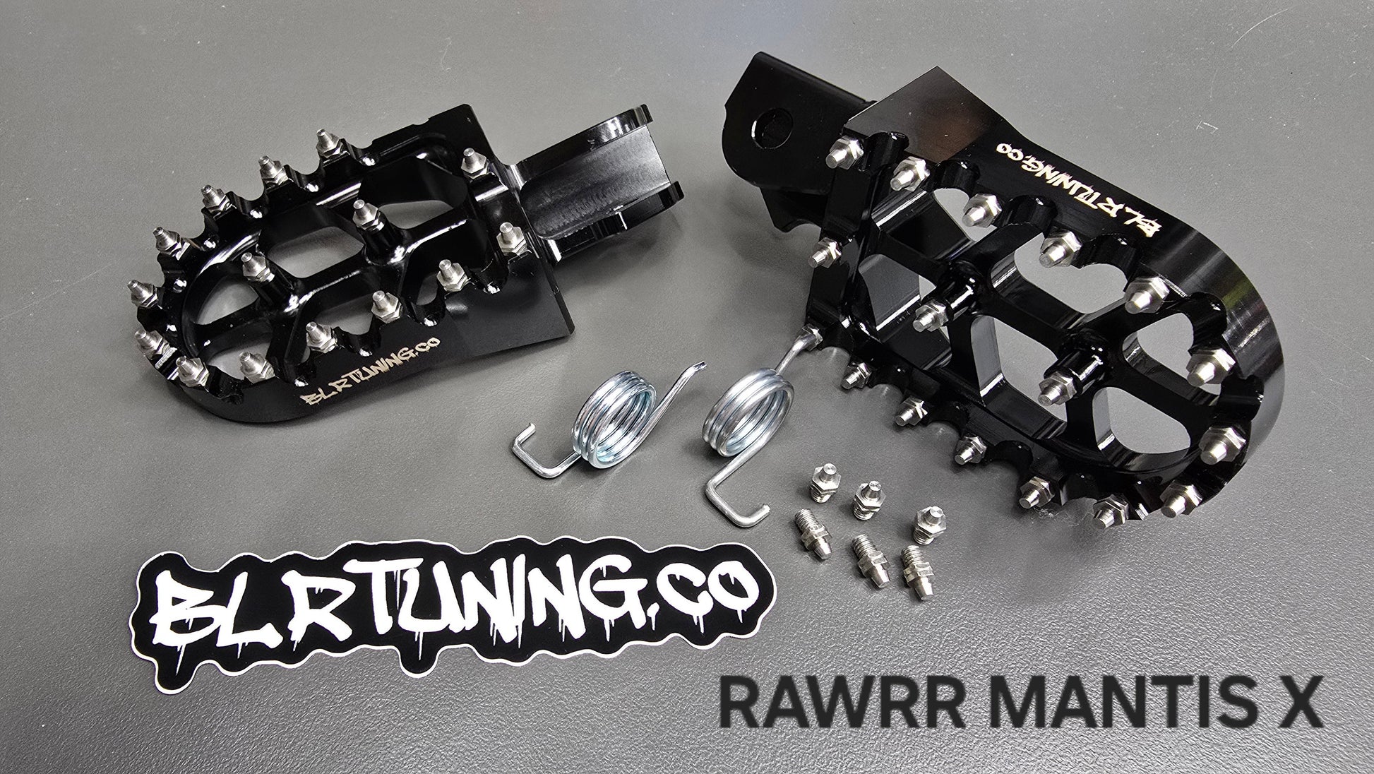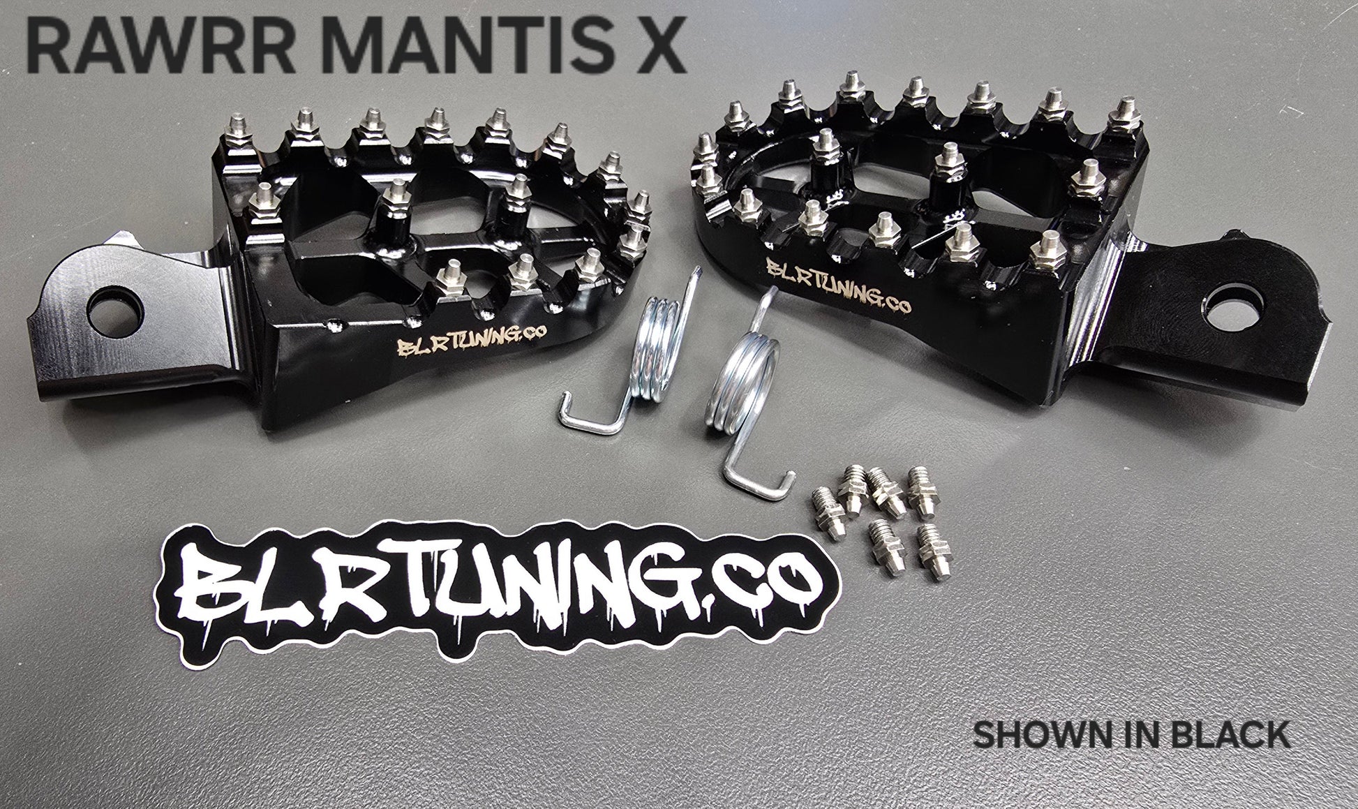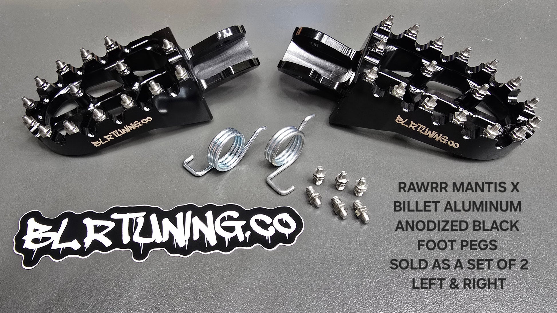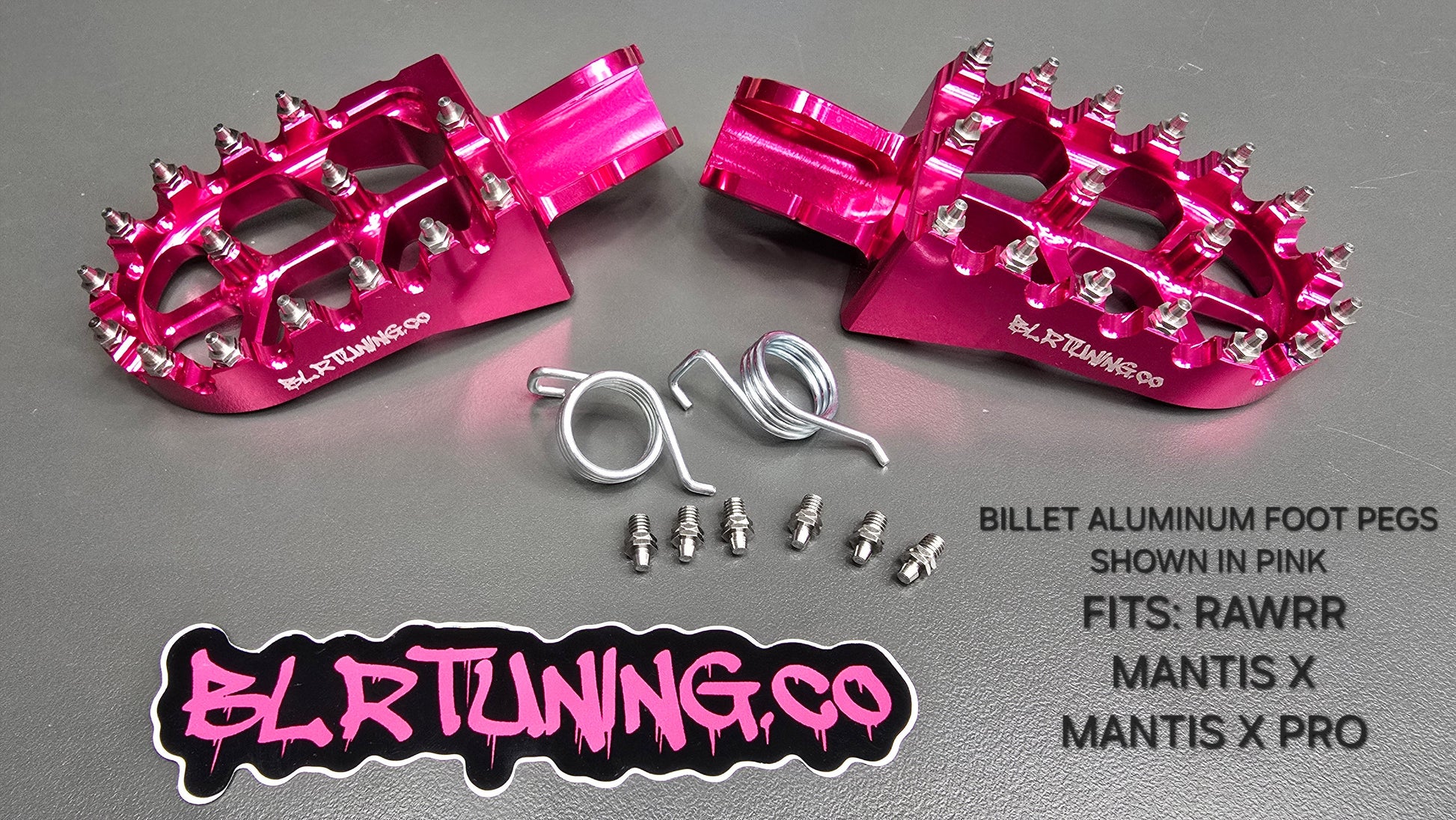 FOOT PEGS FOR RAWRR MANTIS X AND MANTIS X PRO BILLET ALUMINUM WITH STAINLESS STEEL TEETH BY BLR TUNING