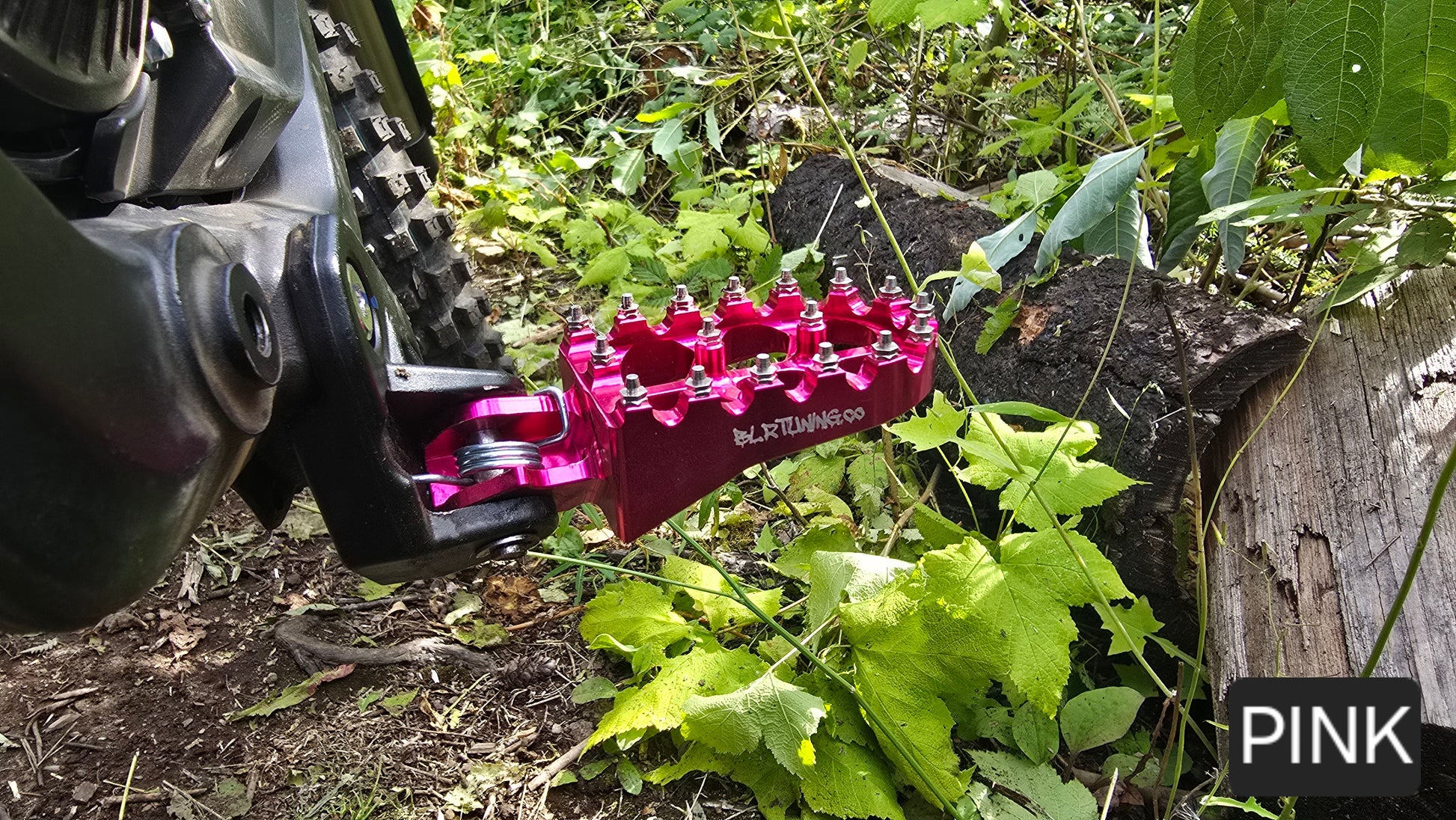 - Optimized Shape and Geometry – Slightly wider and longer than factory pegs, with a forward-leaning angle that puts you in a more aggressive and stable riding position — perfect for off-road attack mode.