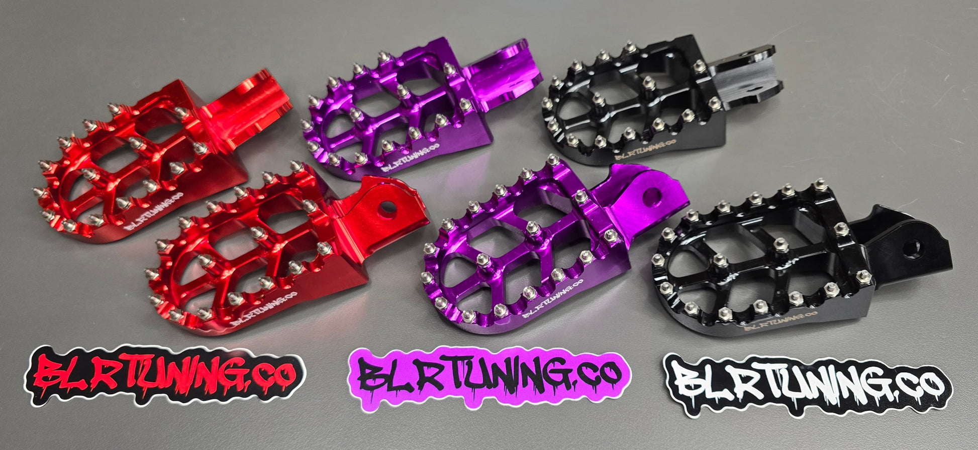 Level up your ride with the BLR TUNING Billet Aluminum Foot Pegs — engineered specifically for the RAWRR Mantis X & Mantis X PRO 72V electric dirt bikes. These are not just an upgrade — they’re a full-blown transformation in control, grip, and durability.